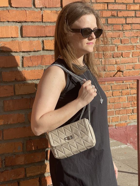 Оригинальная сумка с элементами стежки. Лаконичный дизайн. Вместительность ,несмотря на маленький размер. Внутри сумки есть накладной карман для мелочей.